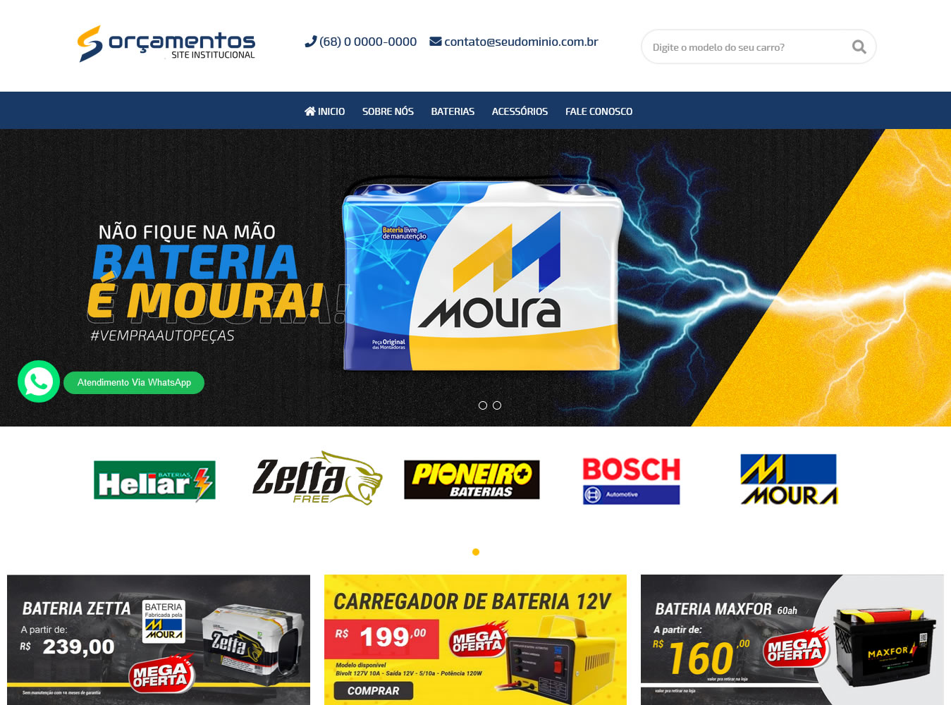 Site Institucional TEMA LOJA DE BATERIAS 100% responsivo em PHP MySQL com Painel Administrador, fácil edição pelo painel, feito em PHP 5.6 a 7.4 MySQL, utilizando os Framework Bootstrap v3.3.7 e Font Awesome 5.7.0 para agiliza maior performance de navegação.